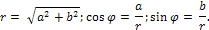 Полагая a=r cos φ, b=r sin φ, можно представить комплексное число z=a+ib в виде z=r(cos φ+I sin φ); величины r и φ определяются через а и b по формулам