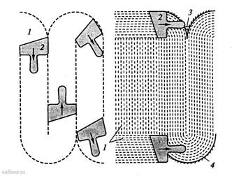 Рисунок 1. Последовательность (1...4) нанесения шпатлевки на поверхность