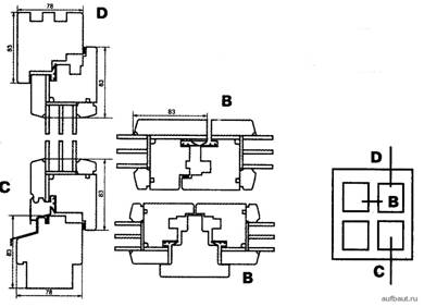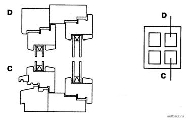 Рисунок 1. Конструктивное решение узлов оконных блоков раздельной конструкции с однокамерными стеклопакетами (ГОСТ 24700-99)