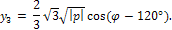 Уравнение третьей степени x3+ax2+bx+c=0 приводится подстановкой х=у-a/3 к виду y3+py+q=0, где