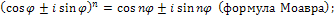 Полагая a=r cos φ, b=r sin φ, можно представить комплексное число z=a+ib в виде z=r(cos φ+I sin φ); величины r и φ определяются через а и b по формулам